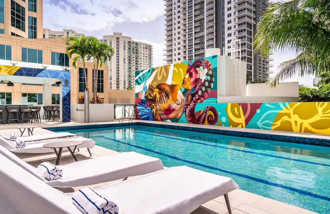 Leisure facilities include an outdoor swimming pool and a fitness center. Guests can also rent bikes for cycling activities in and around Fort Lauderdale, enhancing their experience at this urban oasis.