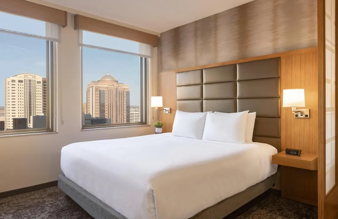Hyatt Place Houston Downtown, a 3-star hotel with an 8.3/10 Booking.com rating, offers air-conditioned rooms and a 24-hour fitness center. Complimentary breakfast options, including buffet and American selections, are available for guests.