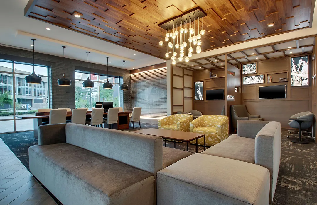The in-house restaurant serves a variety of American dishes, while The Bar offers thoughtfully sourced, regionally inspired food and premium alcoholic beverages. Guests can also enjoy snacks from The Market, featuring grab-and-go items.