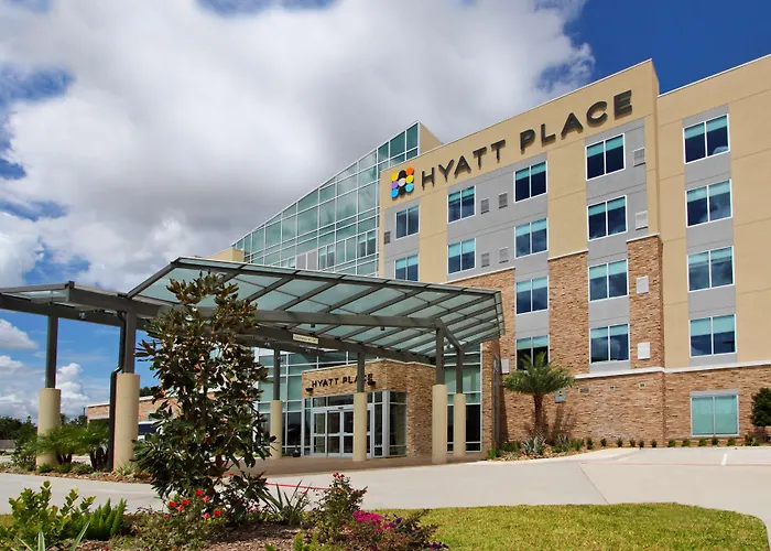 Hyatt Place Houston NW Vintage Park is a 3-star hotel with an 8.7/10 rating, offering a range of amenities including a fitness center and complimentary buffet breakfast. Guests can enjoy a gated area surrounded by palm trees with an outdoor pool and nearby dining options.