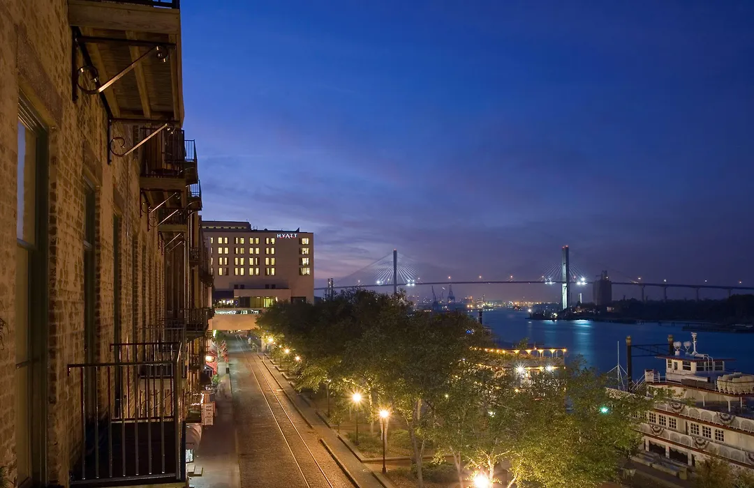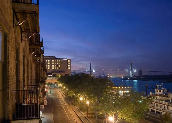 Hyatt Regency Savannah is a 4-star riverfront hotel situated in Historic Downtown Savannah. It features an indoor pool, a fitness center, and a variety of dining options, including Moss + Oak Savannah Eatery with outdoor seating. This property holds an 8.6/10 rating on Booking.com.