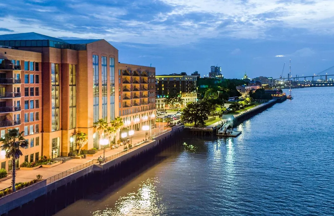 Marriott Savannah Riverfront offers a prime riverfront location with stunning views and easy access to top attractions, shops, and restaurants. This 4-star Savannah hotel features modern amenities including a restaurant, bar, and extensive meeting spaces totaling 40000 square feet.