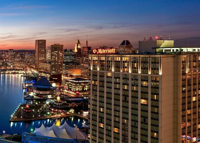 Experience the Baltimore Marriott Waterfront, a 4-star waterfront hotel with a robust event space and modern accommodations. This property features a restaurant, fitness center, and is recognized for its excellent service with an 8.8/10 rating on Booking.com.