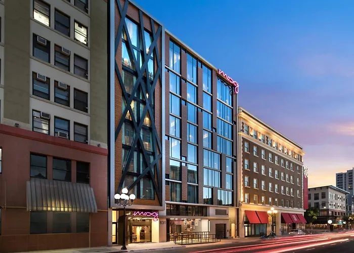 Moxy San Diego Gaslamp Quarter, a 4-star hotel rated 8.1/10 on Booking.com, offers a vibrant experience with a blend of modern amenities. Features include Bar Moxy, a social hub, and a fitness center, all within the lively Gaslamp Quarter district.
