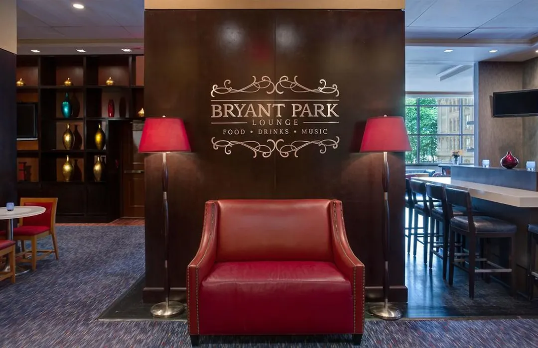 Dining options include the Bryant Park Lounge, a full-service restaurant and bar that serves traditional entrées and signature beverages. Nearby restaurants include Keens Steakhouse and Tony's Di Napoli, known for various cuisines.
