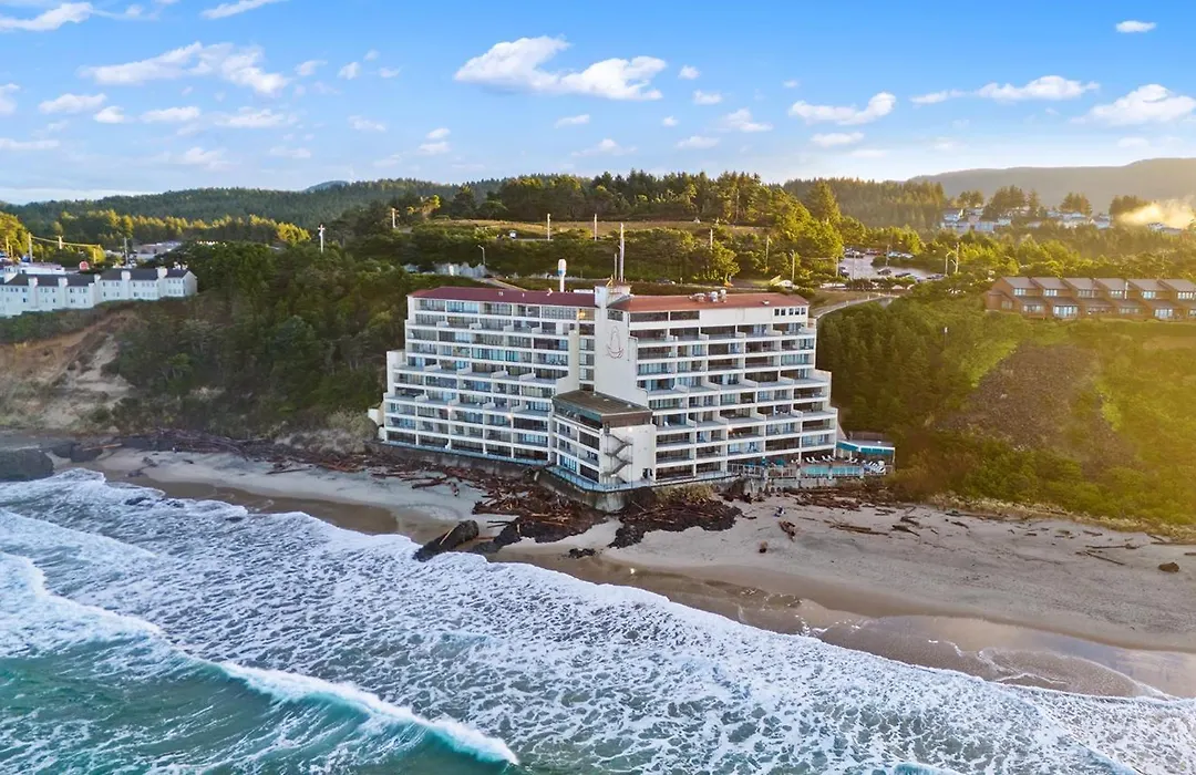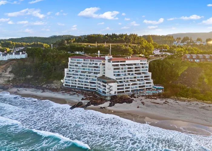 The Inn At Spanish Head features an outdoor heated pool, saunas, and a fitness center for guest relaxation. A recreation room provides entertainment options for families. Guests can explore the nearby Oregon Coast Aquarium, hiking trails, and scenic beaches.