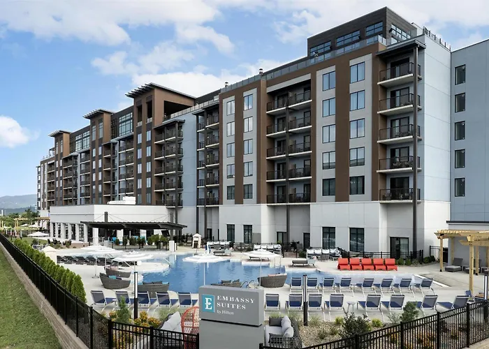 Embassy Suites By Hilton Pigeon Forge Resort is a 4-star family-friendly hotel featuring spacious suites and an indoor pool. Guests enjoy complimentary amenities such as breakfast and Wi-Fi. The property offers easy access to nearby attractions like Dollywood.