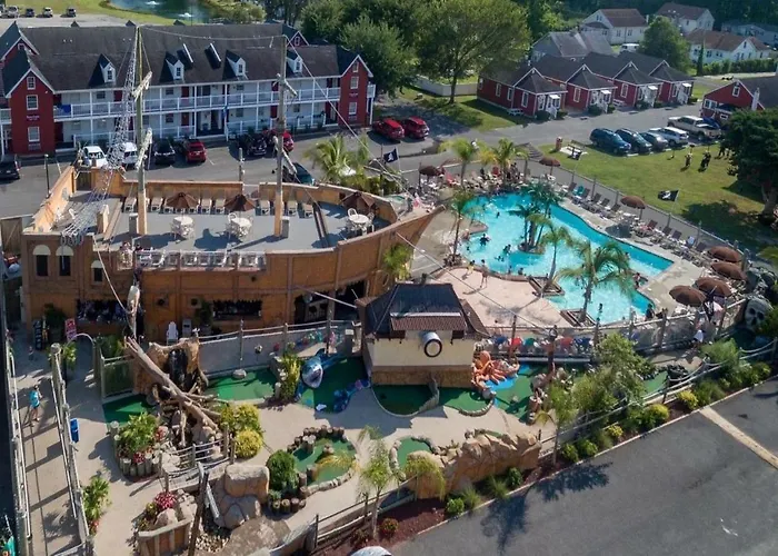 The resort features several recreational options, including a Caribbean-themed outdoor pool, an indoor pool, and a free miniature golf course with 9 landscaped holes. For leisure, guests can unwind in the dinghy-themed hot tub or partake in various organized activities.