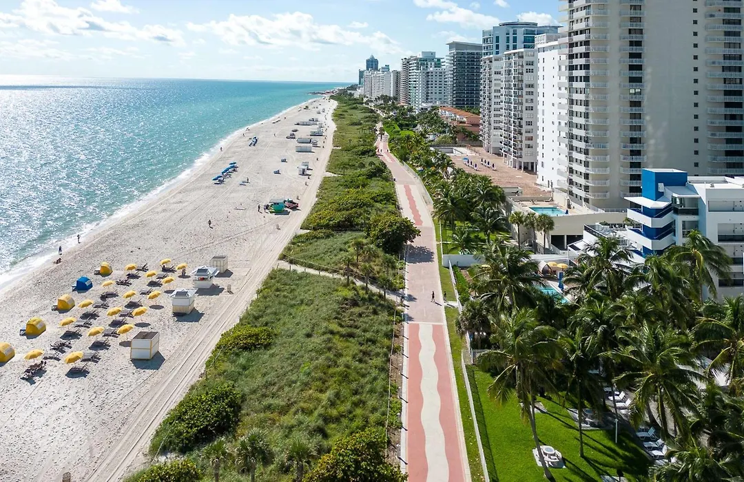 Leisure activities include relaxing by the two ocean-view pools, lounge access to a private beach, and complimentary bike rentals for exploring the Miami Beach Boardwalk. Paddleboarding opportunities are also available, with the first 20 minutes complimentary.