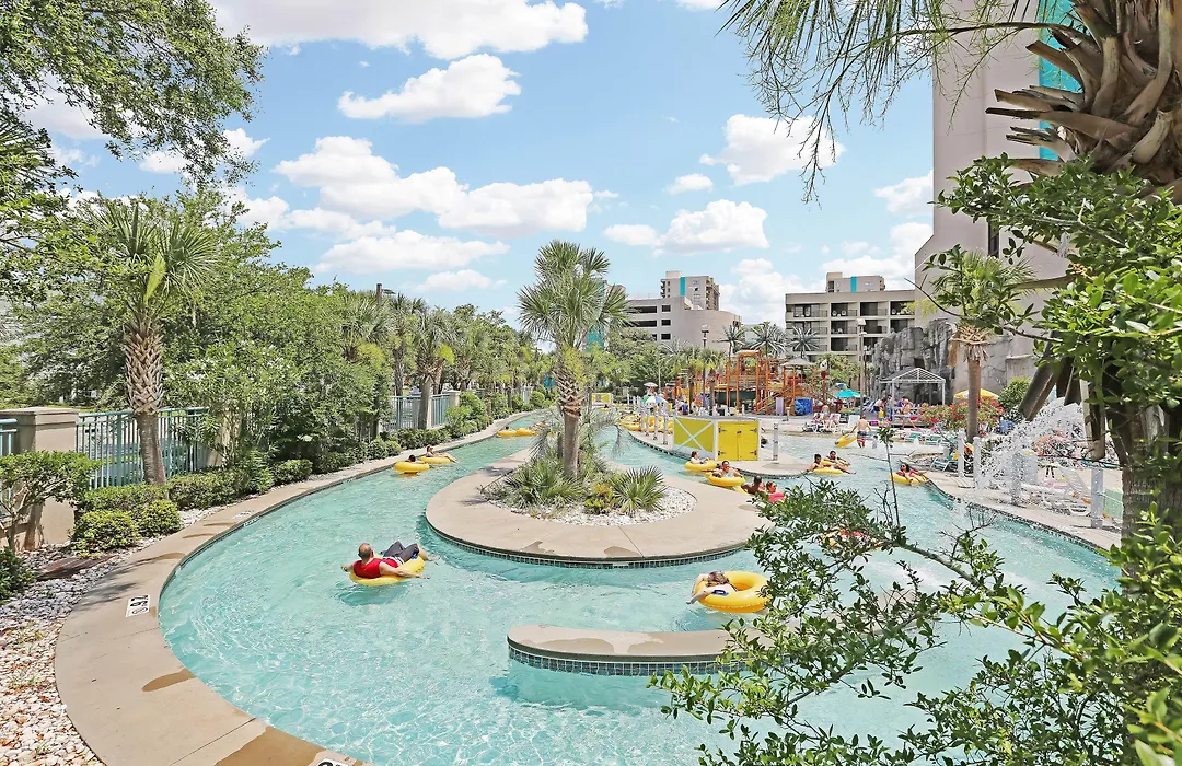 Leisure activities include an on-site water park, indoor and outdoor pools, and poolside family fun activities during summer. The hotel's proximity to Myrtle Beach's shopping, dining, and entertainment venues enhances the overall experience. Guests can also explore nearby attractions like Chapin Memorial Park.