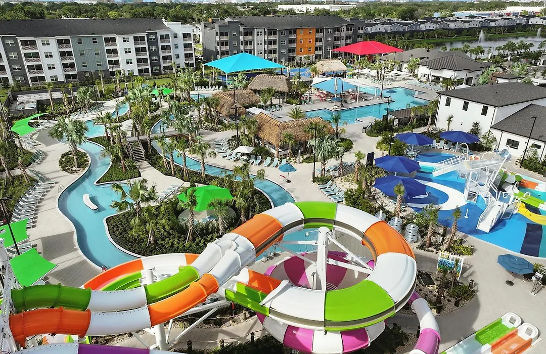 Leisure facilities feature private pools, and guests can prepare meals in well-equipped kitchens. The nearest landmark, Universal Studios Florida, is approximately 1.2 miles away, with other attractions like Wet 'n Wild and ICON Park located within 2.5 miles.