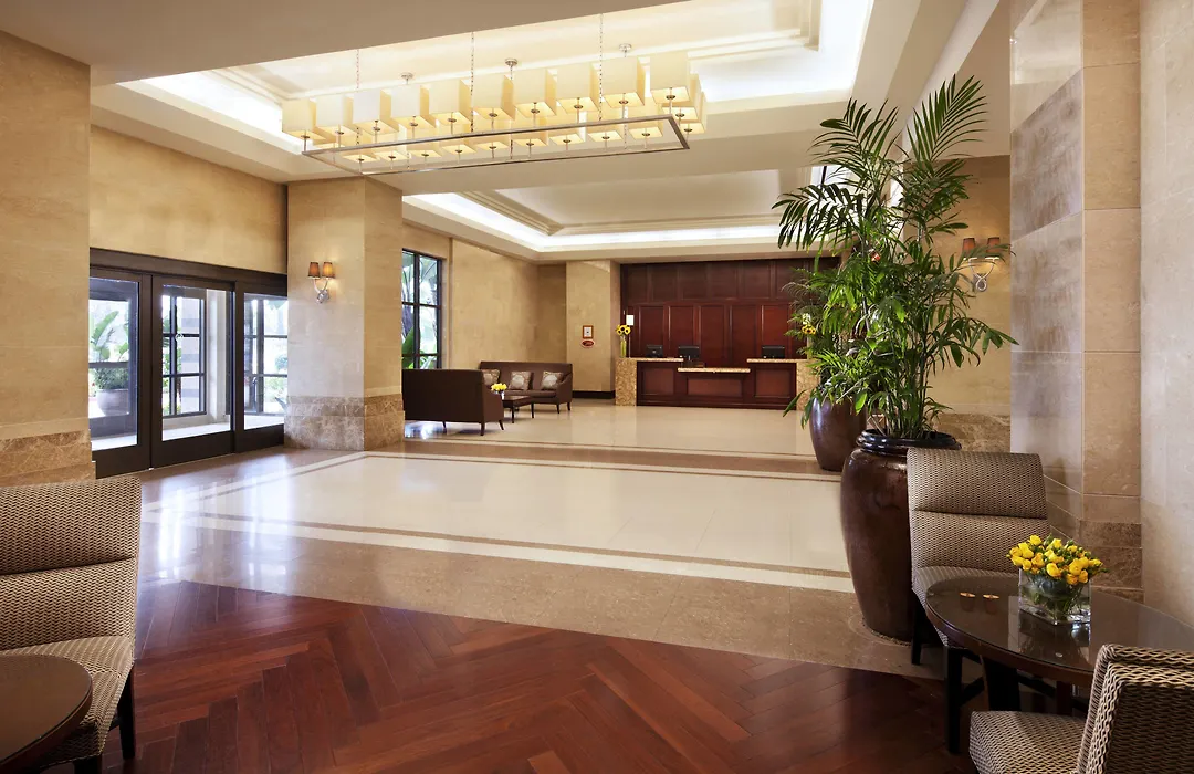 Dining options include the Park Grill, offering Californian cuisine for breakfast, lunch, and dinner. The lounge serves beverages and appetizers during Happy Hour from 5:00 PM to 7:00 PM. Additionally, the Club Lounge provides an American breakfast buffet and all-day snacks.