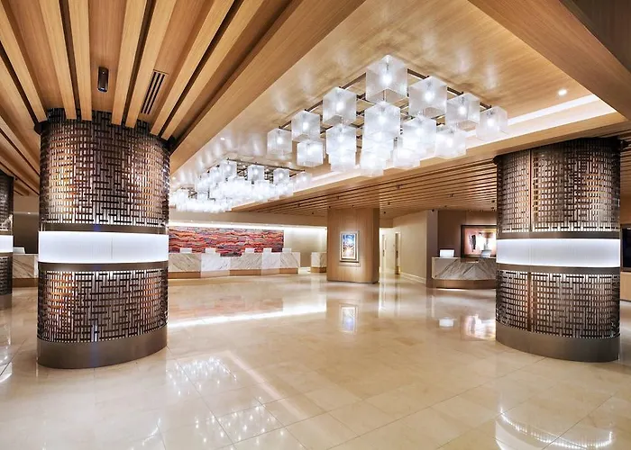 The hotel accommodates business needs with over 75000 square feet of event space and a full-service FedEx Office Business Center, ideal for meetings and corporate events. Recreational facilities include a heated indoor pool and a fitness center on the 35th floor, offering panoramic city views.