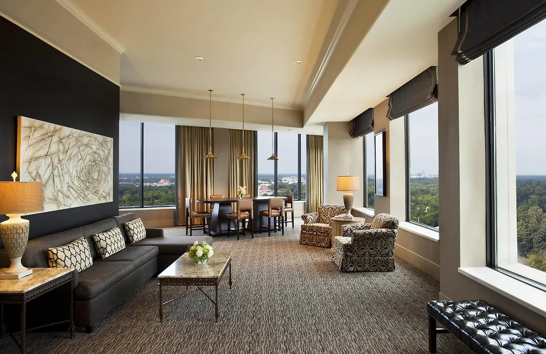 Sheraton Greensboro, a 3-star hotel with an 8.7/10 rating on Booking.com, features a large convention center suitable for up to 6000 attendees and multiple on-site dining options. The property offers free WiFi, self-parking, and a complimentary airport shuttle.