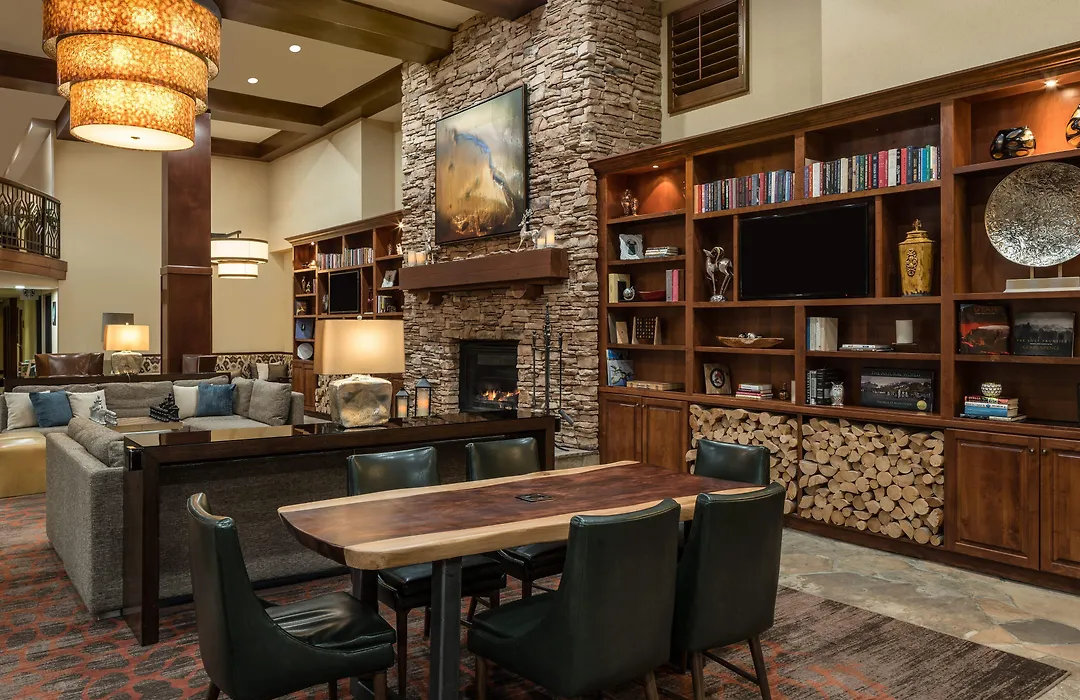Sheraton Park City, a 3-star hotel rated 7.6/10 on Booking.com, offers amenities like an indoor atrium pool, hot tub, sauna, and a youth game room. Dining options include Timbers Restaurant and Lounge with an outdoor patio and a Starbucks for quick snacks.