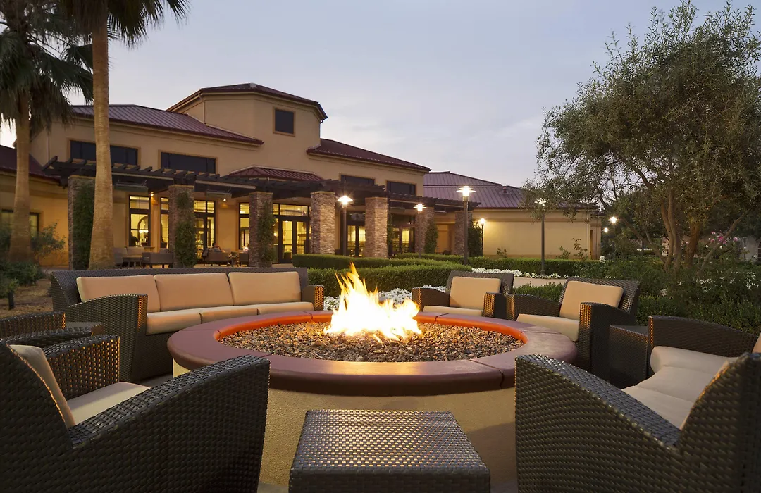 Leisure amenities feature an outdoor pool, hot tub, and a gathering space around an outdoor firepit. For business needs, the hotel offers 6200 square feet of event space, including the Chardonnay Ballroom and an outdoor terrace.