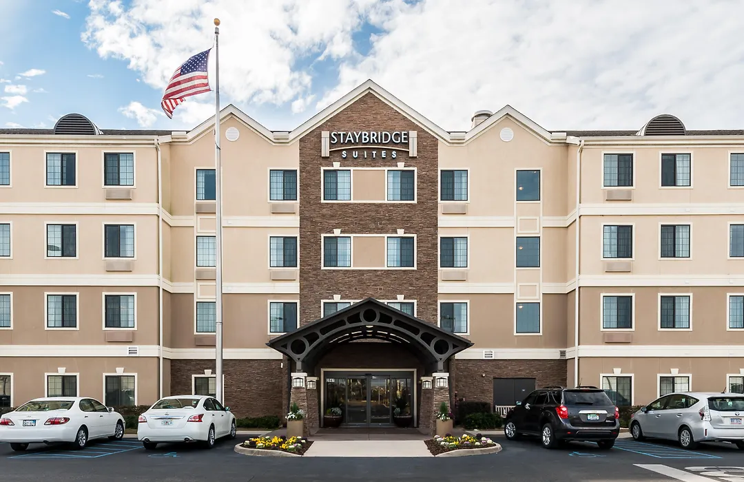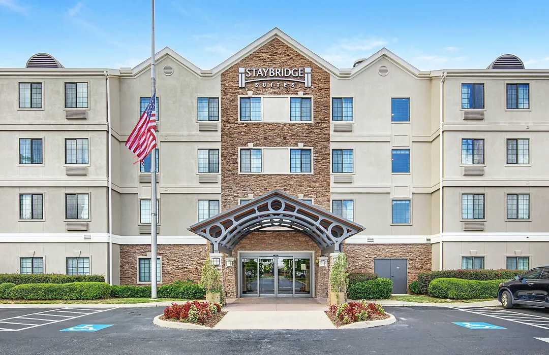 The Staybridge Suites features spacious suites equipped with full kitchens, separate living areas, and multiple flat-screen TVs. Guests enjoy amenities such as free Wi-Fi and a complimentary breakfast that includes healthy options and daily specials.