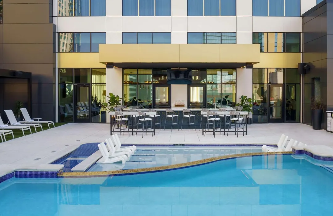 The hotel offers exclusive access to TopGolf Swing Suites, which include interactive games such as golf simulators. Guests can enjoy creative menus and refreshing drinks at the on-site eateries, allowing for leisure without leaving the hotel.
