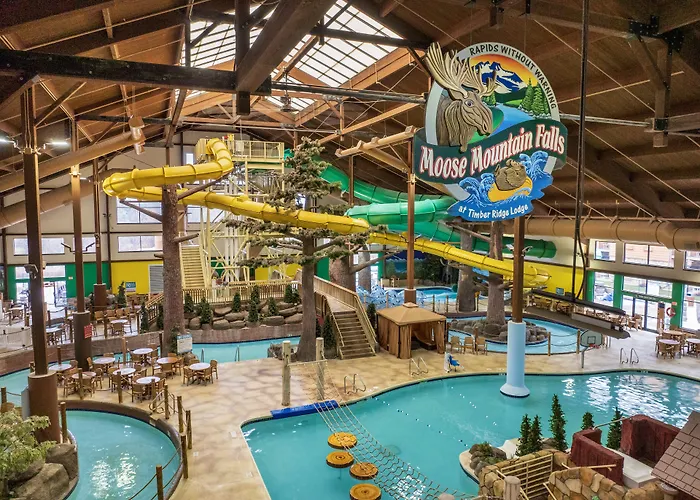 Timber Ridge Lodge And Waterpark features Moose Mountain Falls, a 50000 square-foot indoor/outdoor water park, with water slides, a lazy river, and a dedicated area for younger children. For outdoor adventures, the resort provides access to an Adventure Center, horseback riding, and championship golf courses.
