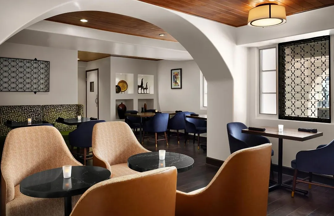 Iluminara Restaurant & Lounge offers outdoor dining with views of the San Jacinto Mountains, serving breakfast, lunch, and dinner. Guests can also enjoy happy hour from 4-7 PM at the bar overlooking the saltwater pool.