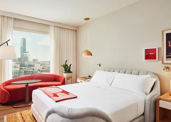 Virgin Hotels Dallas offers a 4-star experience with a rating of 8.7/10 on Booking.com, featuring unique chambers and spacious suites designed for both business and leisure. This pet-friendly hotel includes amenities such as a rooftop pool, a fitness center, and multiple dining options.